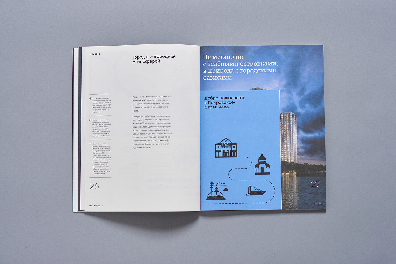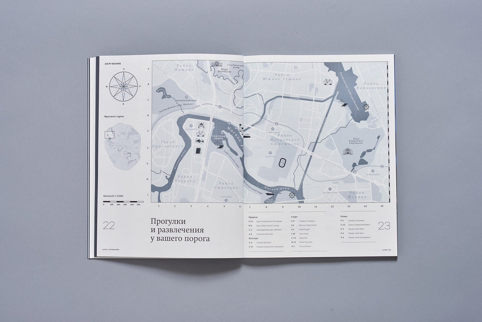 Often the most interesting part of realty project is the location. For this reason was made "Atlas of the best life", wich present Level Streshnevo and the compact guide to the Nort-West of Moscow that you can take with you.